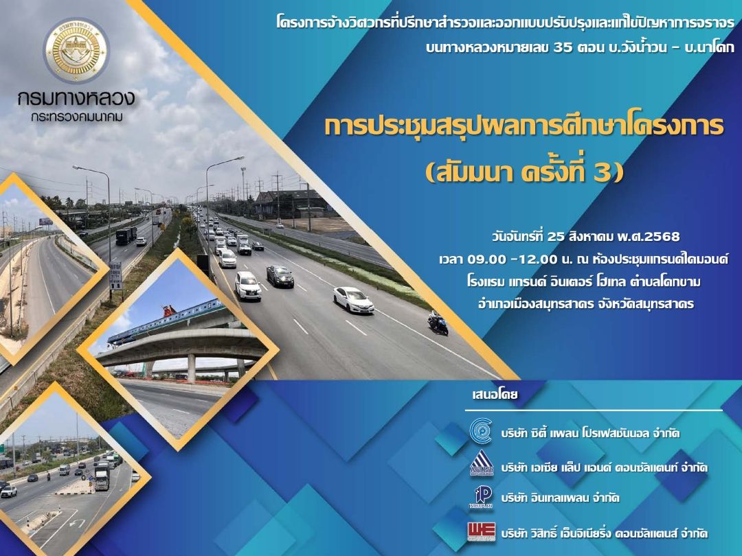 ในการดำเนินงานโครงการดังกล่าว กรมทางหลวงได้เล็งเห็นถึงความสำคัญของการมีส่วนร่วมขององค์กรและประชาชนในพื้นที่ศึกษาโครงการ ตลอดจนส่วนราชการและหน่วยงานที่เกี่ยวข้อง จึงได้กำหนดให้มีการประชุมสรุปผลการศึกษาโครงการ (สัมมนา ครั้งที่ 3) เมื่อวันจันทร์ที่ 25 สิงหาคม